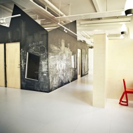 Площадь школы составляет около 1900 кв.м. Здесь нет привычных классов со столами и стульями. Пространство насыщенно интерьерными объектами органической формы — «Ледяная гора», «Дерево», «Пещера», «Остров». Так называемые лаборатории — это зоны, предназначенные для учебы и общения в составе небольших групп по 3-4 человека. Между ними нет глухих перегородок, сами предметы мебели служат зонирующими элементами.