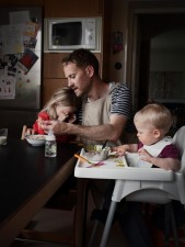 Альфред Нерхаген, 38 лет, ландшафтный архитектор, со своими детьми, 4-летним Заком и 18-месячной Мирой. «Мой отпуск по уходу за детьми много для меня значил. Дети чуть было не привязались к отцу больше, чем к матери. Теперь я часто один укладываю их спать».