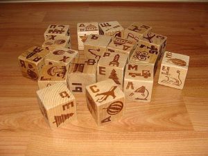 Классические деревянные кубики – одна из самых любимых детских игрушек. Стандартный набор кубиков состоит из 30 ярко раскрашенных кубов, размером 5-6 сантиметров. На них обычно наносят цифры от 0 до 9, буквы алфавита от А до Я, или различные картинки, легко узнаваемые и запоминаемые ребенком. Немного рельефные надписи цифр или букв обычно закрашены красным, голубым, желтым или зеленым цветом. Эти кубики можно использовать в различных играх, например, в складывании слов, сортировке символов, строительстве, счете, изучении алфавита и сравнивании.